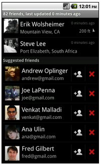 Google縱橫是一項(xiàng)可以分享自己位置同時(shí)尋找家人和朋友的應(yīng)用,新版Google Maps將會(huì)給出一個(gè)縱橫聯(lián)系人建議列表,你可以通過這項(xiàng)列表查看到Google聯(lián)系人中的好友,或許會(huì)查看到失散多年的朋友或親人。你可以點(diǎn)擊+號(hào)將其加入縱橫應(yīng)用,同時(shí)也可以點(diǎn)擊X號(hào)將其從建議列表中刪除。