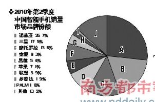 據(jù)統(tǒng)計,今年二季度諾基亞智能手機(jī)約占整個中國市場的26.7%,創(chuàng)下近年來的歷史低點(diǎn)。上周,被業(yè)界視作Symbian和諾基亞“救世主”的旗艦機(jī)型N8正式在中國發(fā)布。然而,由于其采用的全新Symbian3平臺屬諾基亞舊主力平臺S60和新平臺Meego之間的過渡產(chǎn)品,對諾基亞本身來說就不是主力推廣平臺,第三方軟件支持亦寥寥無幾,市場前景堪憂。在智能手機(jī)戰(zhàn)場上,被指創(chuàng)新匱乏、競爭力趨弱的諾基亞正逐步失守。