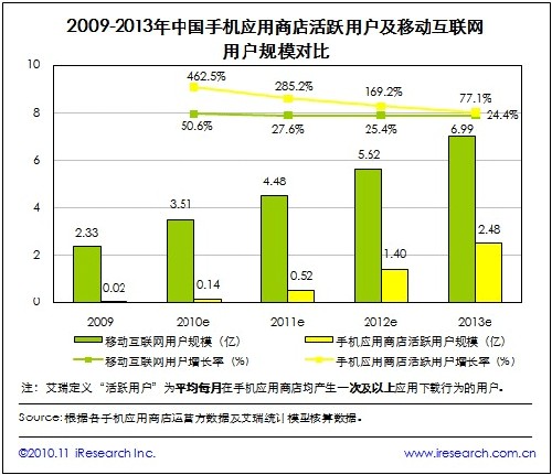 2010年中國手機應用商店用戶增速遠超移動互聯(lián)網