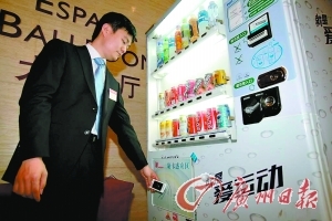 昨日,深圳本土研發(fā)的手機支付自動售貨機亮相,市民直接拿手機在自動售貨機上一刷,就能買飲料和食品。該系統(tǒng)支付主要依靠全球首款智能SD手機存儲支付卡,市民只需將此卡插入手機,便能輕松實現(xiàn)手機支付。有關負責人表示,或將把新一代自動售貨機投入大運村供運動員使用。