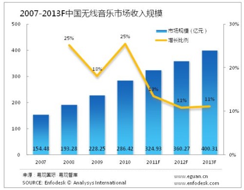 2013年無線音樂市場規(guī)模將達(dá)400億元