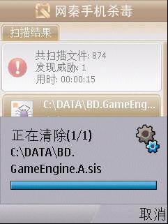 此外,在分析過程中專家還發(fā)現(xiàn),這款手機病毒聯(lián)網(wǎng)下載的“gameEngine.sis_7”惡意插件存在 “自我保護”機制,一旦被下載到手機中將影響其它第三方手機安全軟件的正常安裝。