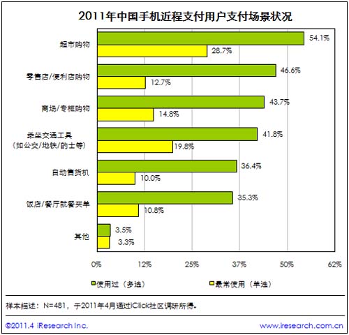 艾瑞咨詢(xún):中國(guó)手機(jī)近程支付場(chǎng)景主要為超市和便利店