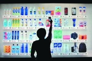 在北京和上海的許多公交站都出現(xiàn)了手機虛擬購物超市,消費者只要用手機拍下所需商品,就可享受送貨上門的服務(wù)。
