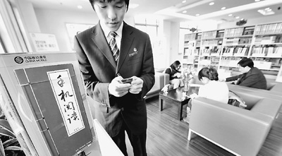 2010年4月16日下午,國內(nèi)首個G3閱覽室在杭州市下城區(qū)圖書館內(nèi)建成并免費(fèi)開放,實現(xiàn)了移動信息技術(shù)與公共圖書館的有機(jī)結(jié)合。圖為讀者正在G3閱覽室里通過G3手機(jī)閱讀器免費(fèi)閱讀。