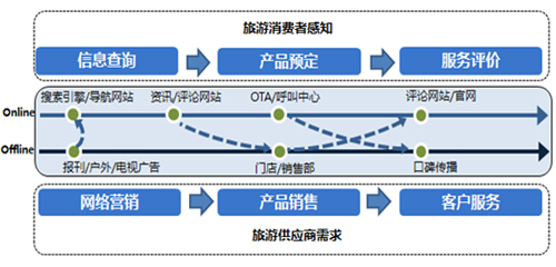 從旅游供應(yīng)商的維度出發(fā),缺失的兩個(gè)環(huán)節(jié)往往對(duì)其訂單生成有決定性意義。一方面是在網(wǎng)民獲取旅游信息的環(huán)節(jié)借助互聯(lián)網(wǎng)展示及搜索廣告進(jìn)行品牌曝光及活動(dòng)營銷,提升企業(yè)的品牌知名度及銷售轉(zhuǎn)化率。另一方面是在網(wǎng)民針對(duì)旅游服務(wù)進(jìn)行評(píng)價(jià)及分享的環(huán)節(jié)及時(shí)解答服務(wù)疑問引導(dǎo)評(píng)論主題,通過口碑因素提高老用戶APRU值并帶來新用戶。