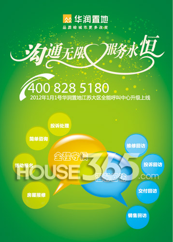 2012年1月1日,伴隨著新年鐘聲,華潤置地客戶服務熱線400-828-5180正式登陸常州市,這是我市人居環(huán)境不斷改善的一大利好,也是開發(fā)商華潤置地尊重人居環(huán)境發(fā)展、重視客戶感受,踐行“品質給城市更多改變”的品牌理念的一大舉措。