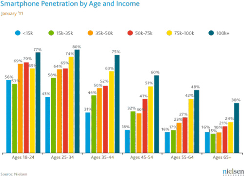 圖:尼爾森:年齡和收入決定智能手機(jī)普及率