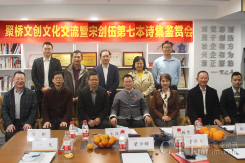 12月28日,聚橋文創(chuàng)文化交流暨宋劍伍第七本詩集鑒賞會在廣州天河召開,本次活動為首屆廣東中華優(yōu)秀傳統(tǒng)文化節(jié)系列活動之一,由廣東省傳統(tǒng)文化促進會、廣州聚橋文創(chuàng)、廣州市愛國為民文化信息傳播有限公司聯(lián)合主辦。廣東省文聯(lián)副秘書長、省文藝評論家協(xié)會專職副主席梁少鋒,廣東省傳統(tǒng)文化促進會會長李世玉,深圳城投集團執(zhí)行總裁安菲佳,廣東省傳統(tǒng)文化促進會林啟明、吳彬、一凡、徐波博士,聚橋文創(chuàng)總經(jīng)理、廣東省傳統(tǒng)文化促進會常務理事鄒橋華,青麥源集團董事長王錫光,商業(yè)戰(zhàn)略分析師、詩人宋劍伍,廣東金咨貓總經(jīng)理陳錫文等參加本次活動。正皓集團董事長潘堅發(fā)來活動祝賀信,并表示集團將在2024年和廣東省傳統(tǒng)文化促進會及詩人宋劍伍在品牌文化上有更深度的合作。