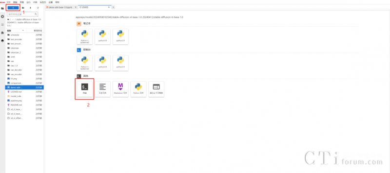 參加本次活動,用戶只需四步就可開啟AI作圖之旅。第一步,在商城選擇stable-diffusion-xl-1.0 商品后點(diǎn)擊“立即使用”,并在后續(xù)出現(xiàn)的notebook頁面點(diǎn)擊左上角“+”,以此進(jìn)入終端頁面。