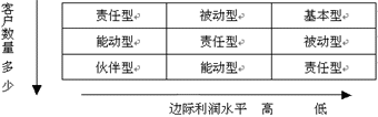 需要指出的是這5種程度的客戶關(guān)系類(lèi)型并不是一個(gè)簡(jiǎn)單的從優(yōu)到劣的順序,企業(yè)所能采用的客戶關(guān)系的類(lèi)型一般是由它的產(chǎn)品以及客戶決定的, 比如寶潔公司它的洗發(fā)水、洗衣粉的客戶之間是一種被動(dòng)性的關(guān)系:寶潔設(shè)立客戶抱怨處理機(jī)構(gòu),處理客戶投訴,改進(jìn)產(chǎn)品;但是寶潔和沃爾瑪特之間卻可以建立互惠互利的伙伴性關(guān)系?铺乩崭鶕(jù)企業(yè)的客戶數(shù)量以及企業(yè)產(chǎn)品的邊際利潤(rùn)水平提供了一個(gè)表格幫助企業(yè)選擇自己和是的客戶關(guān)系類(lèi)型。
