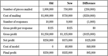 請注意,郵寄的純利潤增加了$125,000,甚至你扣除由于數(shù)據(jù)采集而產(chǎn)生的軟件、硬件即人力資源方面的$40,000,純利潤還增加了$85,000。建模的投入轉(zhuǎn)化成了200%的收益,這遠遠超過了BB&CC對這一項目的ROI要求。