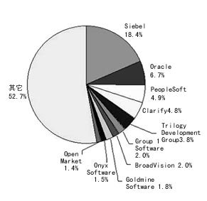 就CRM的廠商來講,市場份額比較分散,而且競爭態(tài)勢變化很快。實(shí)際上,除了前五名的廠商外,其它廠商的市場份額不超過2%,其中大多數(shù)CRM廠商是在過去18個月才推出CRM產(chǎn)品。