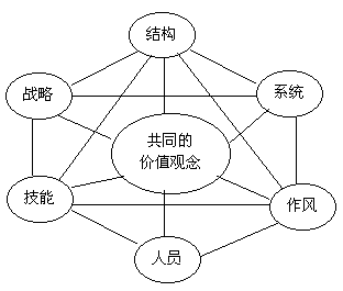 按照麥肯錫以及科特勒的綜合觀點,前面三個要素戰(zhàn)略、結構和系統(tǒng)被認為是最成功的硬件;后面四個要素作風、人員、技能和共同的價值觀念是軟件。每個組織都和總體環(huán)境的某個部分相互影響,相互作用,并且把這一部分成為相關環(huán)境,并且指出最能適應環(huán)境的公司必將獲得成功。