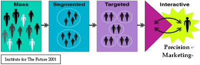 首先,互聯(lián)網(wǎng)的出現(xiàn)改變了營銷的概念,為大規(guī)模定制創(chuàng)造了空前的機遇。隨著富裕而又有辨別能力的中產(chǎn)階級的逐漸壯大,預(yù)先營銷的期望以及針對個人的解決方案日益成為一種標準。從記住他們的行為&偏好并為他們發(fā)送相關(guān)產(chǎn)品信息 (例如Amazon.com) …到幫助他們得到自己理想中的產(chǎn)品 (例如Dell.com,) ,CRM觀念的關(guān)鍵之處就在于為客戶提供符合他們需求的產(chǎn)品/服務(wù)而不是向他們推銷你的東西;ヂ(lián)網(wǎng)使你能夠與客戶建立學(xué)習(xí)關(guān)系,從銷售轉(zhuǎn)移到解決問題。互聯(lián)網(wǎng)上的CRM已經(jīng)上升到了另一個高度。