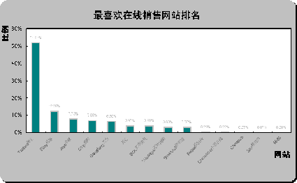 易趣中國和貝塔斯曼最不受歡迎。從最不喜歡在線銷售網(wǎng)站排名(如上圖)可以看出,易趣中國eBay