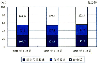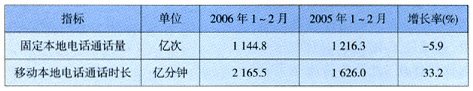 表1 2006年1-2月固定市話與移動市話通話量