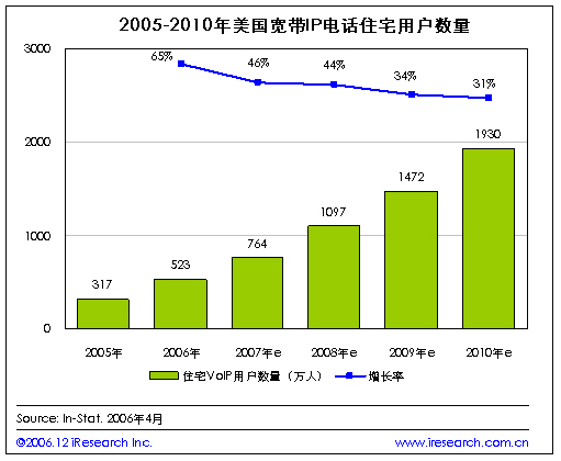 2007年美國住宅IP用戶數(shù)量將達(dá)到764萬