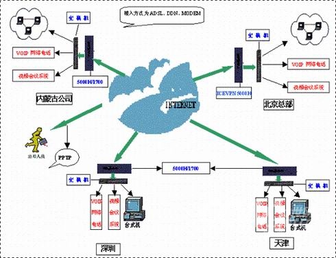 按照西貝公司的要求,ICEFLOW采用FUNCTION口將其普通辦公區(qū)和重要區(qū)域(如財務區(qū))分離開來,進一步保障關鍵數(shù)據傳輸?shù)陌踩裕捎肰OIP電話,將為公司節(jié)約大量電話費用。