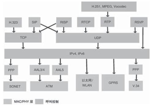 SIP、 RTP、 RTCP、 UDP、 TCP、 IP和 GPRS上。