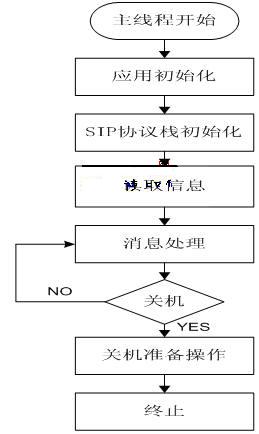 系統(tǒng)軟件是基于SIP協(xié)議棧的基礎(chǔ)上實(shí)現(xiàn)的。由于SIP協(xié)議棧采用模塊化設(shè)計(jì)思想,因此,系統(tǒng)軟件可以直接調(diào)用協(xié)議棧各模塊提供的API。軟件應(yīng)用模塊的消息獲取線程是實(shí)時(shí)獲取協(xié)議棧處理的結(jié)果(以消息或事件的形式存儲在協(xié)議棧消息隊(duì)列中),并把它轉(zhuǎn)換成系統(tǒng)應(yīng)用的消息結(jié)構(gòu)存放在應(yīng)用模塊的消息隊(duì)列中。圖2是軟件應(yīng)用模塊的程序流程圖。