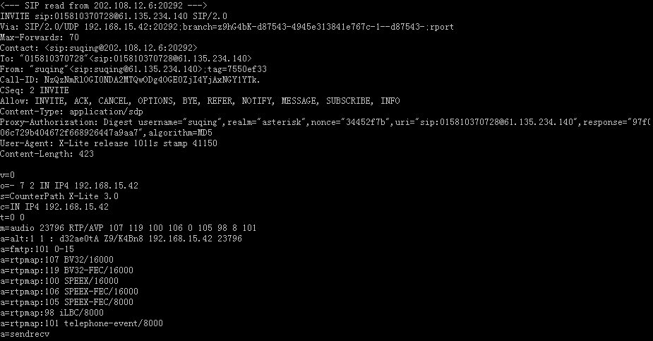Asterisk PBX 針對(duì)上面的分析情況,響應(yīng)X-Lite會(huì)話繼續(xù)下去:
