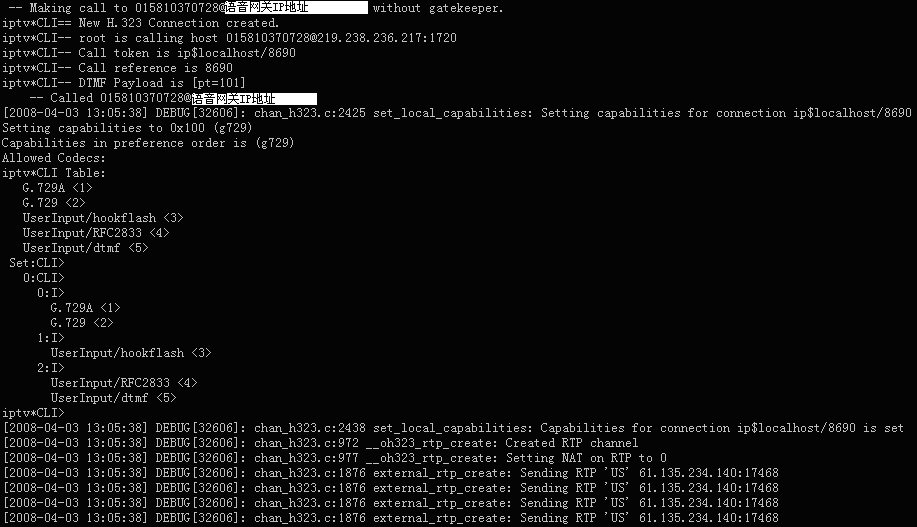 Asterisk與華為8010語(yǔ)音網(wǎng)關(guān)的H323連接已經(jīng)成功建立
