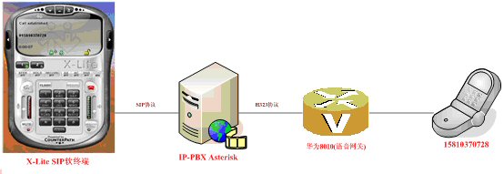 1.VoIP軟終端X-Lite,對(duì)應(yīng)圖4-1的PC PHONE:PC用戶使用SIP軟終端(目前只使SIP協(xié)議作為輸入信令)訪問(wèn)IP-PBX服務(wù)器軟交換后臺(tái),對(duì)普通座機(jī)或手機(jī)發(fā)起呼叫,實(shí)現(xiàn)PC2Phone的通訊。