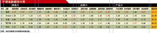 在本次IP語音產(chǎn)品調(diào)研中,思科以24.45的高分位居榜首,以明顯的優(yōu)勢(shì)超過其他競(jìng)爭(zhēng)對(duì)手,獲得IP語音產(chǎn)品的渠道冠軍。其渠道力、品牌力和產(chǎn)品力三大類指標(biāo)均名列第一,與2007年相比,思科綜合得分提高了0.95分。