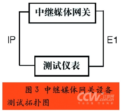 我國(guó)通信行業(yè)國(guó)家標(biāo)準(zhǔn)《IP中繼媒體網(wǎng)關(guān)設(shè)備測(cè)試方法》中明確了中繼媒體網(wǎng)關(guān)十個(gè)大項(xiàng)的測(cè)試,分別是基本功能測(cè)試、接口測(cè)試、協(xié)議測(cè)試、通信流程測(cè)試、網(wǎng)管功能測(cè)試、性能測(cè)試、可靠性測(cè)試、網(wǎng)同步測(cè)試、常規(guī)測(cè)試和環(huán)境測(cè)試。按照?qǐng)D3所示的測(cè)試拓?fù)鋱D進(jìn)行連接,使用測(cè)試儀表仿真軟交換、綜合接入設(shè)備和程控交換機(jī),就可以按照測(cè)試方法中的測(cè)項(xiàng)要求,逐一得出測(cè)試結(jié)果。
