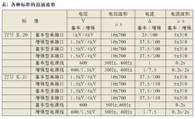 K.20/K.21(國際電信聯(lián)盟)和中國的YD/T993、950標(biāo)準(zhǔn)。不同的標(biāo)準(zhǔn)要求保護(hù)器件、技術(shù)和拓?fù)渚哂胁煌姆(wěn)定性狀態(tài)。通過比較我們發(fā)現(xiàn),符合美國標(biāo)準(zhǔn)的保護(hù)器的抵御能力要比符合國際電信聯(lián)盟標(biāo)準(zhǔn)的高,更比符合中國標(biāo)準(zhǔn)的為高。在大部分情況下,符合美國標(biāo)準(zhǔn)的保護(hù)解決方案基本上都能通過ITU-T