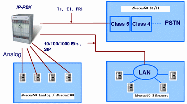 Abacus50系列產(chǎn)品分為Abacus50-Analog,Abacus50-E1/T1,Abacus50-Ethernet。其中,Abacus50-Analog具有2個FXO模擬接口,可以支持Loop-Start模擬協(xié)議,并支持MOS/PSQM/PESQ語音質(zhì)量分析;Abacus50-Analog支持的媒體方式包括音調(diào),話音,V.34Modem,T.30傳真等。Abacus50-E1/T1具有4個E1或者T1接口,可以支持SS7,ISDN-PRI,V5.1/V5.2,CAS(隨路信令)等PSTN信令,并支持MOS/PSQM/PESQ語音質(zhì)量分析;Abacus50-E1/T1支持的媒體方式同樣包括音調(diào)、話音和T.30傳真等。Abacus50-Ethernet具有兩個Ethernet接口(GE光口或者10/100/1000M電口),可以支持SIP/H.323/MGCP/H.248等VoIP協(xié)議,并支持MOS/PSQM/PESQ語音質(zhì)量分析;Abacus50-Ethernet支持的媒體方式包括音調(diào),G.711/G.723/G.726/G.729/AMR/AMR-WB/EVRC話音,T.30/T.38傳真,H.263/H.264視頻等。