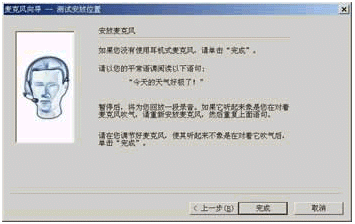 。2)現(xiàn)在你看到的是"安放麥克風(fēng)"對話框(如圖5所示),如果你沒有使用頭戴式麥克風(fēng),那么就可以點(diǎn)擊"完成"按鈕。