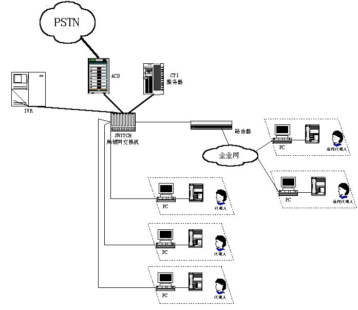 主題詞:呼叫中心 CTI IVR ACD 因特網(wǎng) 客服代理