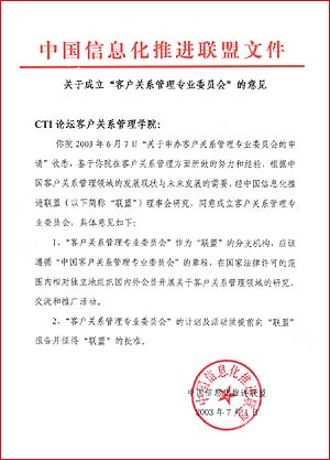 近日,由中國移動、中國網(wǎng)通、中國聯(lián)通、海爾集團、聯(lián)想集團、摩托羅拉、微軟、CTI論壇等20多家單位發(fā)起籌備的"中國客戶關(guān)系管理專業(yè)委員會"(以下簡稱專委會),經(jīng)信息產(chǎn)業(yè)部中國信息化推進聯(lián)盟的批準,正式在京成立。