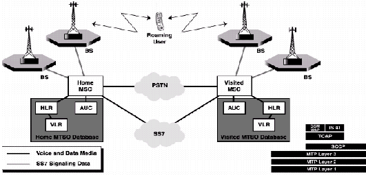 除了空中接口,在無線系統(tǒng)的設(shè)計中支持無線用戶的移動性是主要的挑戰(zhàn)。無線系統(tǒng)對信令的要求明顯要比實現(xiàn)類似功能的地上有線系統(tǒng)要苛刻得多。結(jié)果使得無線網(wǎng)絡(luò)必須組合更先進(jìn)更全面的信令控制系統(tǒng)。即使移動單元在它的歸屬網(wǎng)絡(luò)中,系統(tǒng)也要隨時跟蹤它的位置,因為呼入、認(rèn)證和傳遞功能需要知道它當(dāng)前所處的位置。系統(tǒng)運營商提供給用戶的移動等級有越來越復(fù)雜的趨勢,這就要求在系統(tǒng)間必須應(yīng)用復(fù)雜的信令才足以支持漫游、登記和路由尋找等功能。這就是無線系統(tǒng)普遍選擇SS7作為信令協(xié)議的原因。
