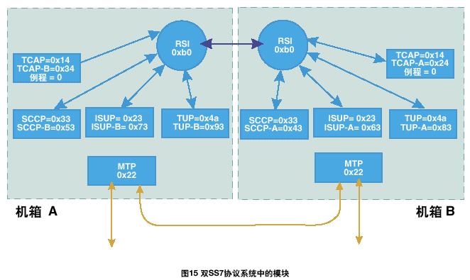 一個(gè)雙ISUP/TUP系統(tǒng)通過激活每個(gè)機(jī)箱中的一半電路協(xié)議狀態(tài)機(jī)進(jìn)行工作。每個(gè)ISUP/TUP層通過本地MTP3發(fā)送所有的傳送流量。本地MTP3采用與相鄰SS7節(jié)點(diǎn)之間的本地鏈路進(jìn)行傳輸,如果該鏈路發(fā)生故障,則采用機(jī)箱之間的SS7鏈路。