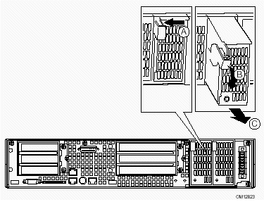 2. 向左旋轉(zhuǎn)PCI擋板支架(參見(jiàn)圖5-6中B),將其滑出卸掉;