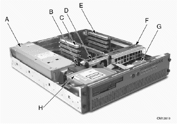 2. 卸掉頂蓋,找到服務(wù)器板卡上后備電池的位置(參見(jiàn)圖5-8);