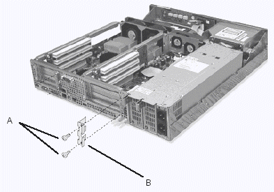 1. 卸下機(jī)箱后部用來(lái)固定PCI擋板支架的兩顆螺絲釘(參見(jiàn)圖5-6中A);