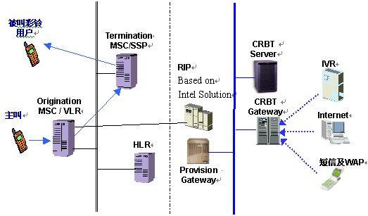 CRBT RIP應(yīng)答主叫端局的呼叫并根據(jù)主、被叫播放定制的回鈴音; 。。7. 主叫端局搭通主叫到彩鈴RIP之間的話路,主叫聽到彩鈴; 。。8.