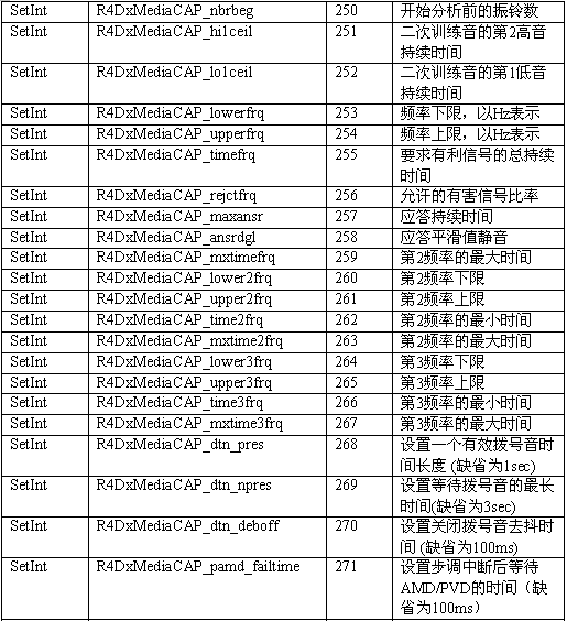必須注意,調(diào)用API級(jí)的函數(shù)設(shè)置一個(gè)CTADE_A參數(shù)可能不只改變電路板級(jí)的參數(shù)。例如,R4DxMedia中,使用函數(shù)MediaSetBool設(shè)置REGID_R4DxMediaDisableAllToneDetection(280)為0或1來(lái)清除Dialogic提示音ID。