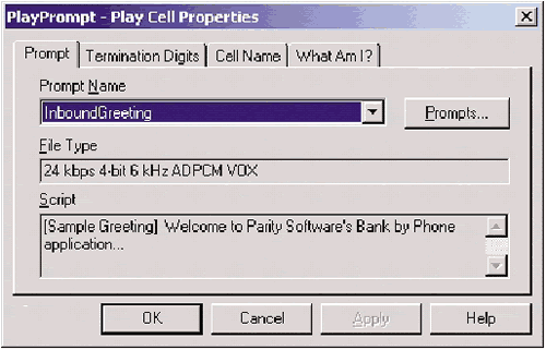 圖7: 特性對(duì)話框,用于為PlayPrimpt功能塊設(shè)置提示名稱和終端數(shù)字