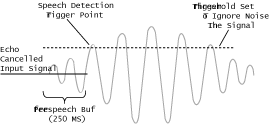 - 預緩沖(Pre-Speech Buffer) - 進入的語音數(shù)據(jù)被存在一個250毫秒的緩沖區(qū)里。 當檢測到語音能量,這一部分儲存在緩沖區(qū)里的語音就會被轉(zhuǎn)發(fā)到語音識別資源來被處理。這種預緩沖的里包含的關(guān)鍵信息在高識別準確率要求的時候是十分關(guān)鍵的。