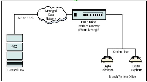 - 場(chǎng)景 2 - 把遠(yuǎn)端辦公室通過(guò)一個(gè)包交換網(wǎng)絡(luò)連接到總公司PBX系統(tǒng)上. 基本來(lái)說(shuō), 網(wǎng)關(guān)把數(shù)字電話(huà)功能擴(kuò)展到遠(yuǎn)程辦公室.